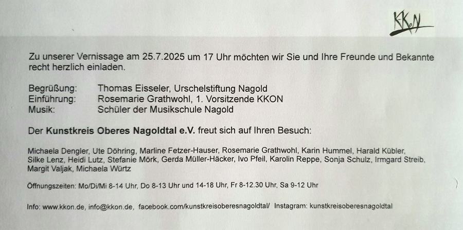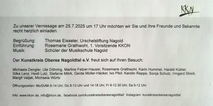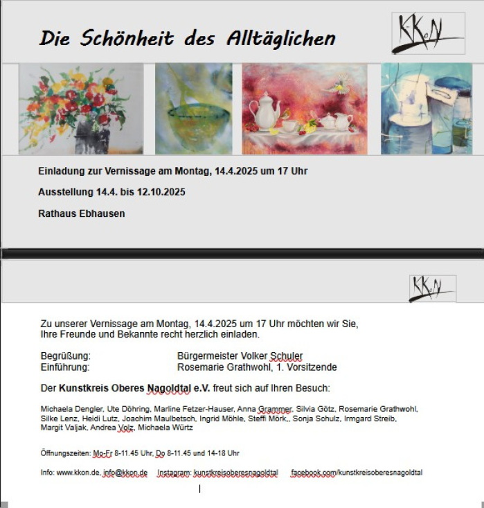 Einladung zur Vernissage am 1.5.2024 um 14 Uhr im Kloster Reuthin in Wildberg